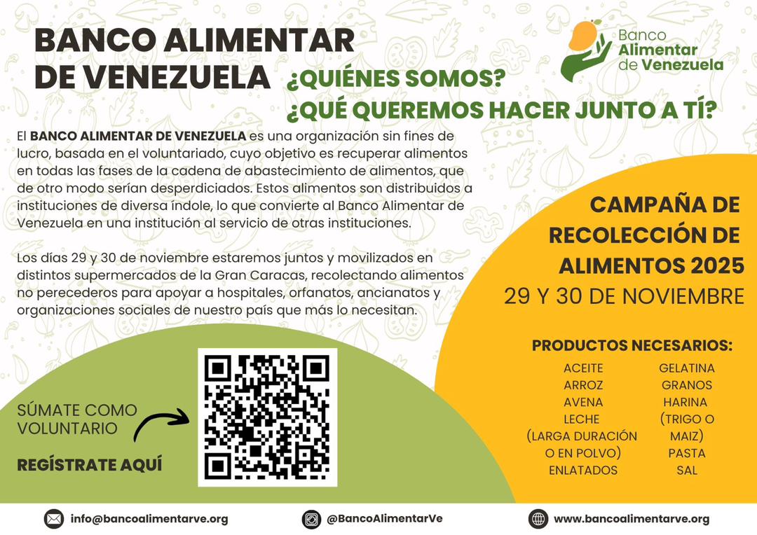 Los interesados en participar en la jornada de recolección de alimentos pueden registrarse como voluntarios en la página bancoalimentarve.org, sección «Quiero ser voluntario».