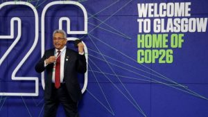 El expresidente de Sri Lanka Gotabaya Rajapaksa en la conferencia sobre el cambio climático COP 26.